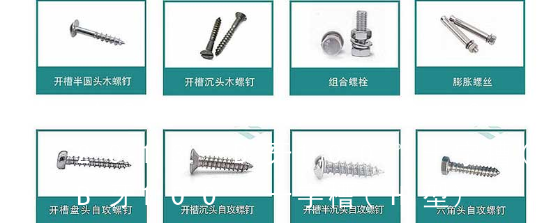 B-英規(BSW) S-國際標準(ISO) T-特殊標準 規格標準——GB標準 十字槽盤頭自攻螺釘 GB 845-85 十字槽沉頭自攻螺釘 GB 846-85 十字槽半沉頭自攻螺釘 GB 847-85 開槽盤頭自攻螺釘 GB 5282-85 開槽沉頭自攻螺釘 外扳擰:六角、六角法蘭面、六角凸緣、六角花形等;內扳擰:一字槽、十字槽H型、十字槽Z型、十字槽F型、四方槽、復合槽、內花鍵、內六角花形、內三角、內六角、內12角、離合器槽、六葉片型槽、高扭矩十字槽等。3、